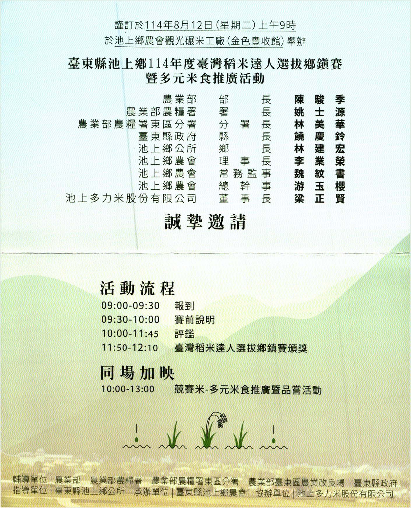 114.08.12-池上鄉農會(臺東縣池上鄉114年度臺灣稻米達人選拔鄉鎭賽曁多元米食推廣活動)
