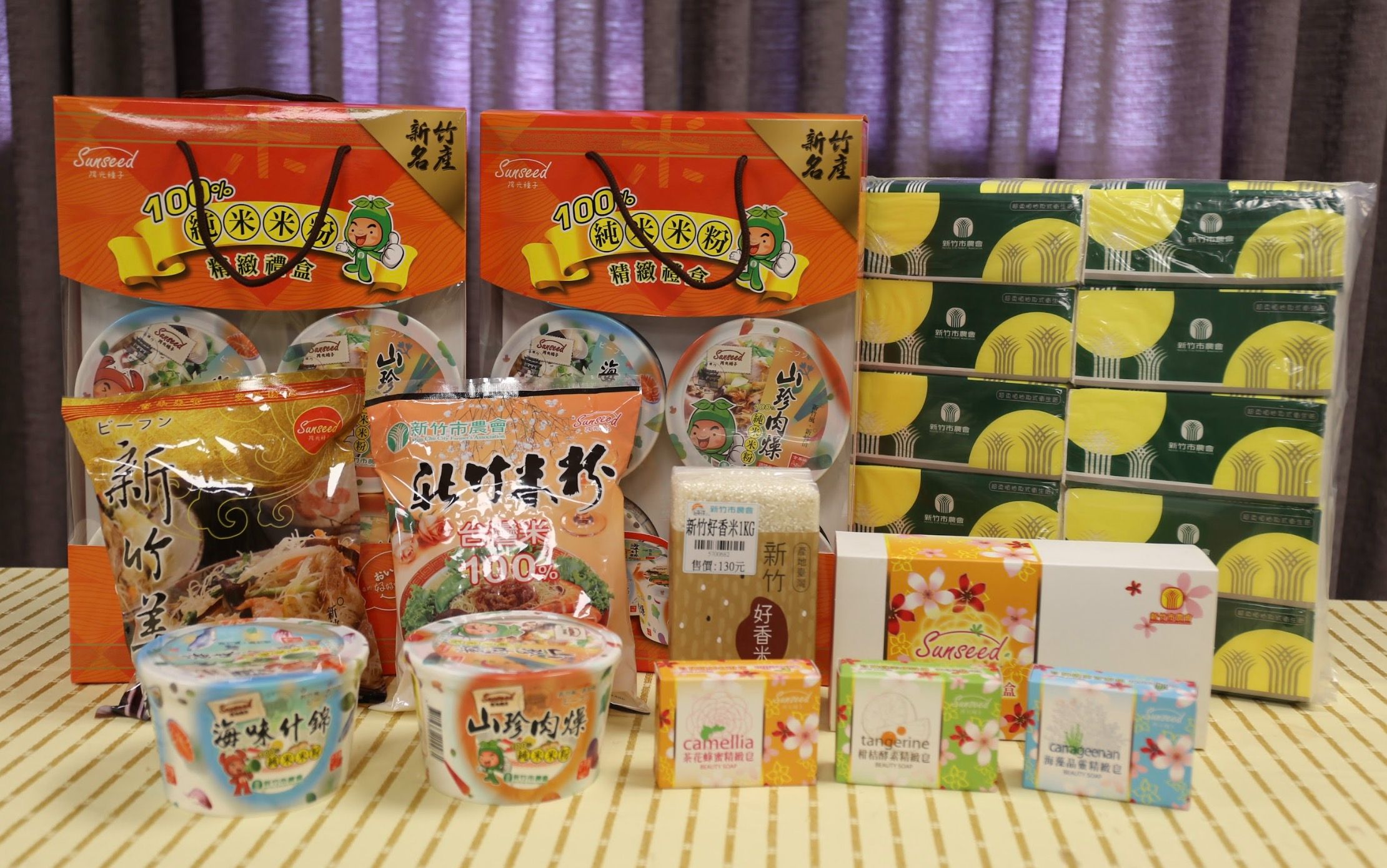 新竹市農會加工品的開發如新竹米粉、台粳 9 號香米等老饕最愛,在包裝上力求質感提升。