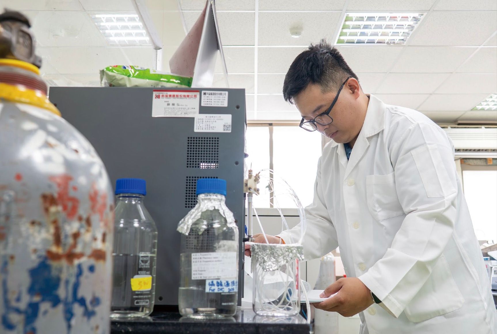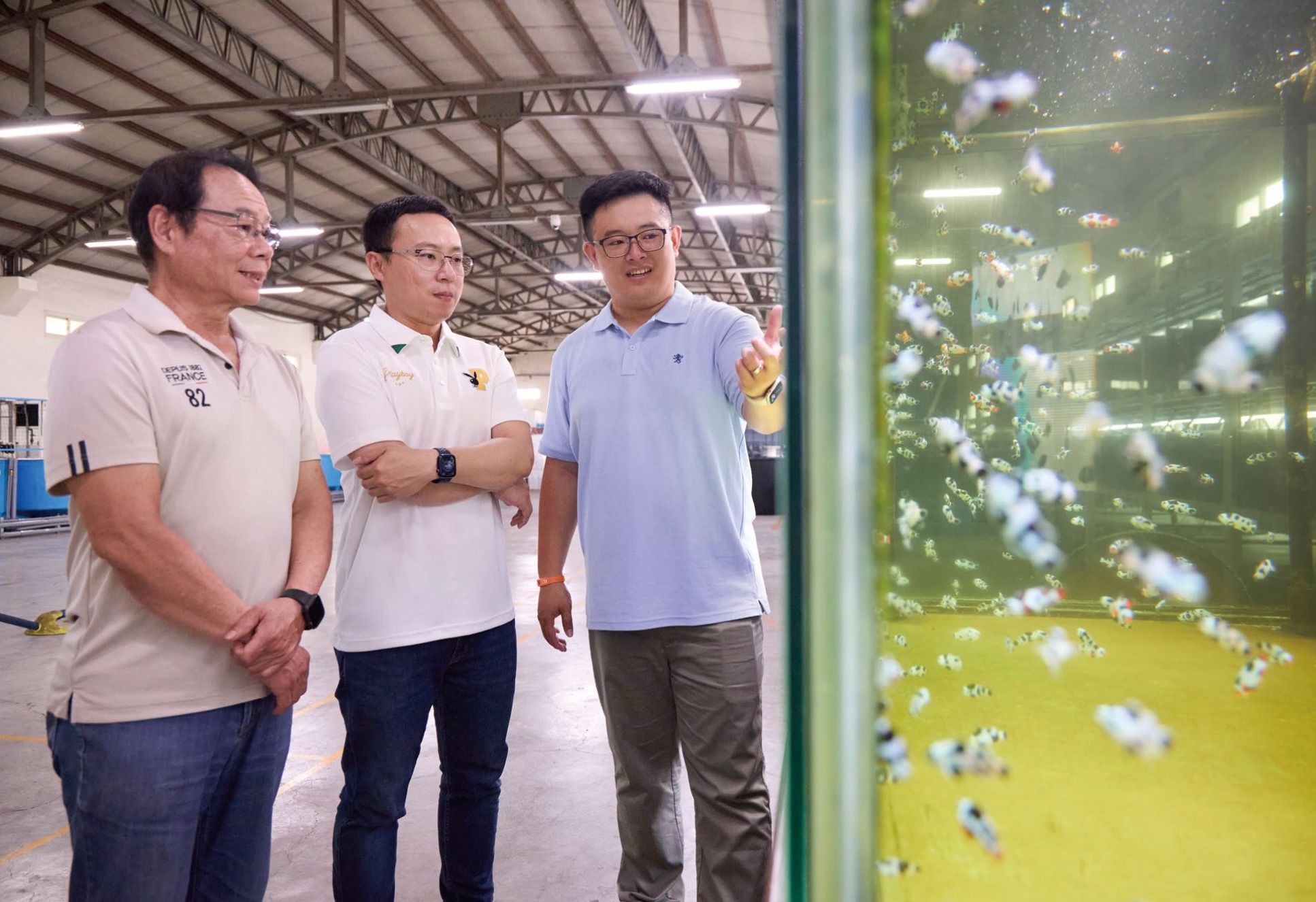 「我們是用水產養殖的專業跟角度,去切入觀賞水族。」薛雍霖表示,同樣都是養魚,但食用魚與觀賞魚的規模差距甚大,「一個用魚塭養,一個用玻璃缸養,雖然技術上大同小異,但規模是沒辦法等比例放大的。」他解釋一百公升的魚缸和一百噸的水體,投餵時間、投餵飼料、魚產生的廢棄物等等,都會對養殖系統造成不同程度的負擔,背後的作用方式得運用科學實驗得出數據,來修正養殖環節。